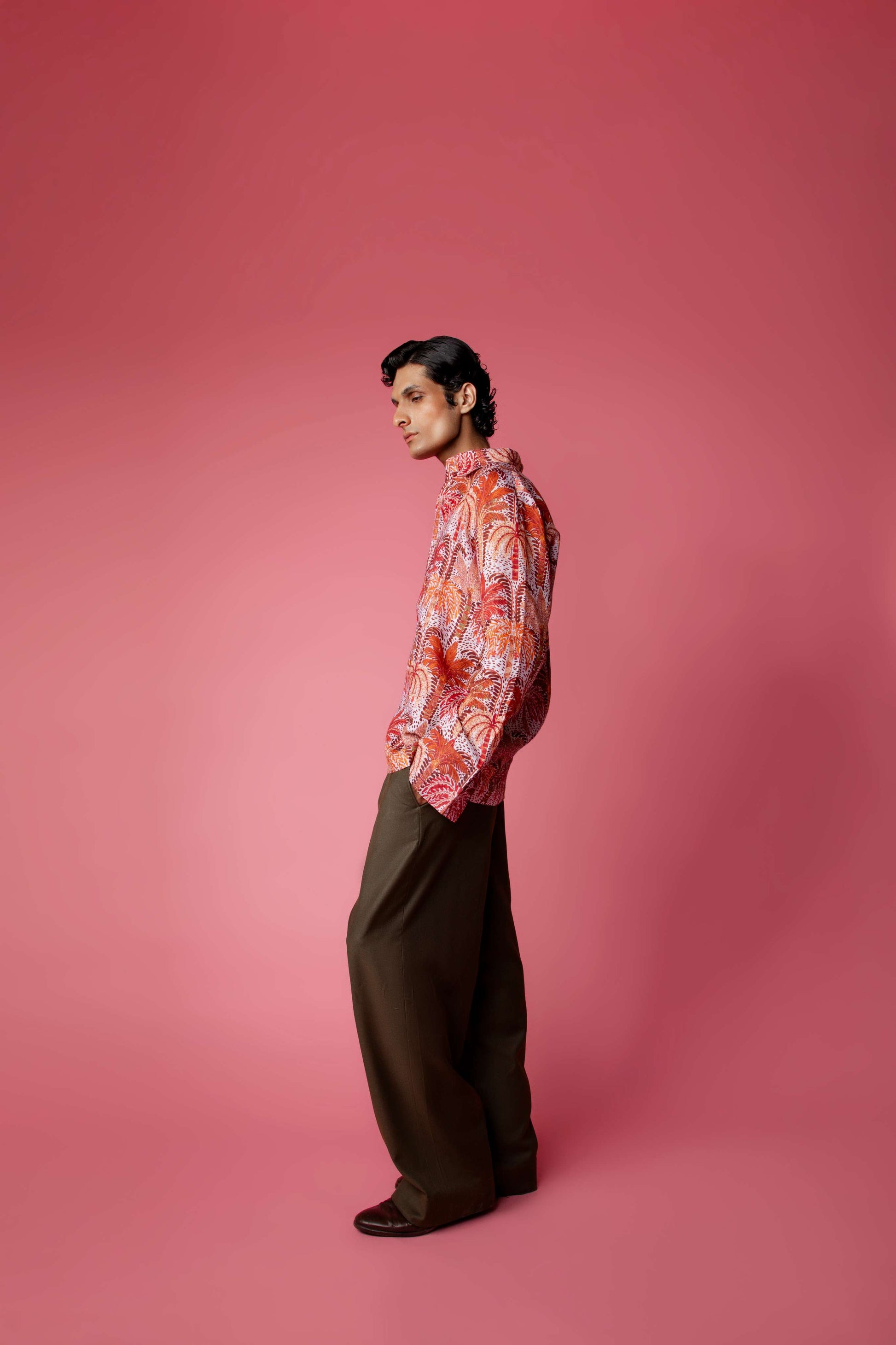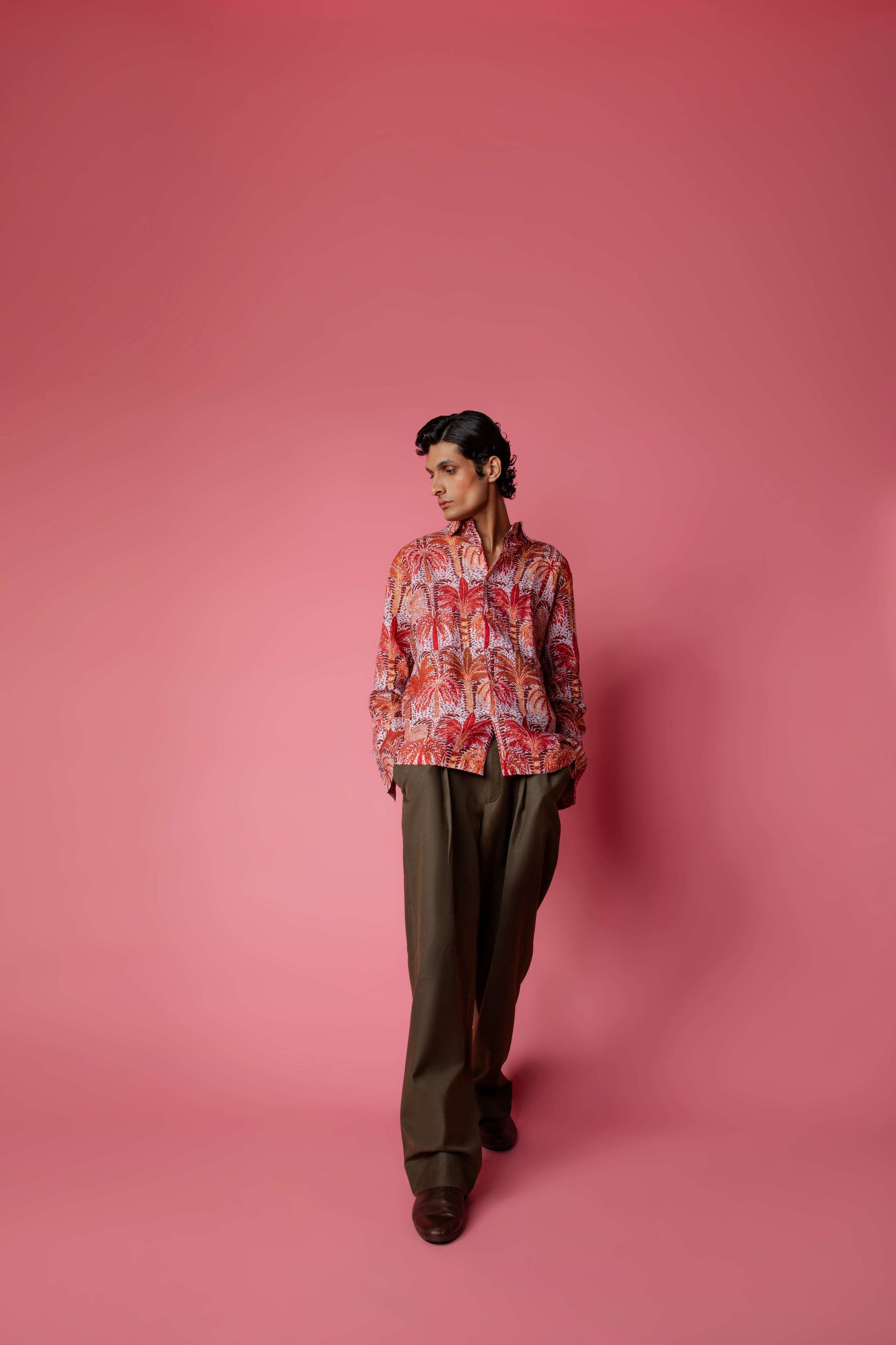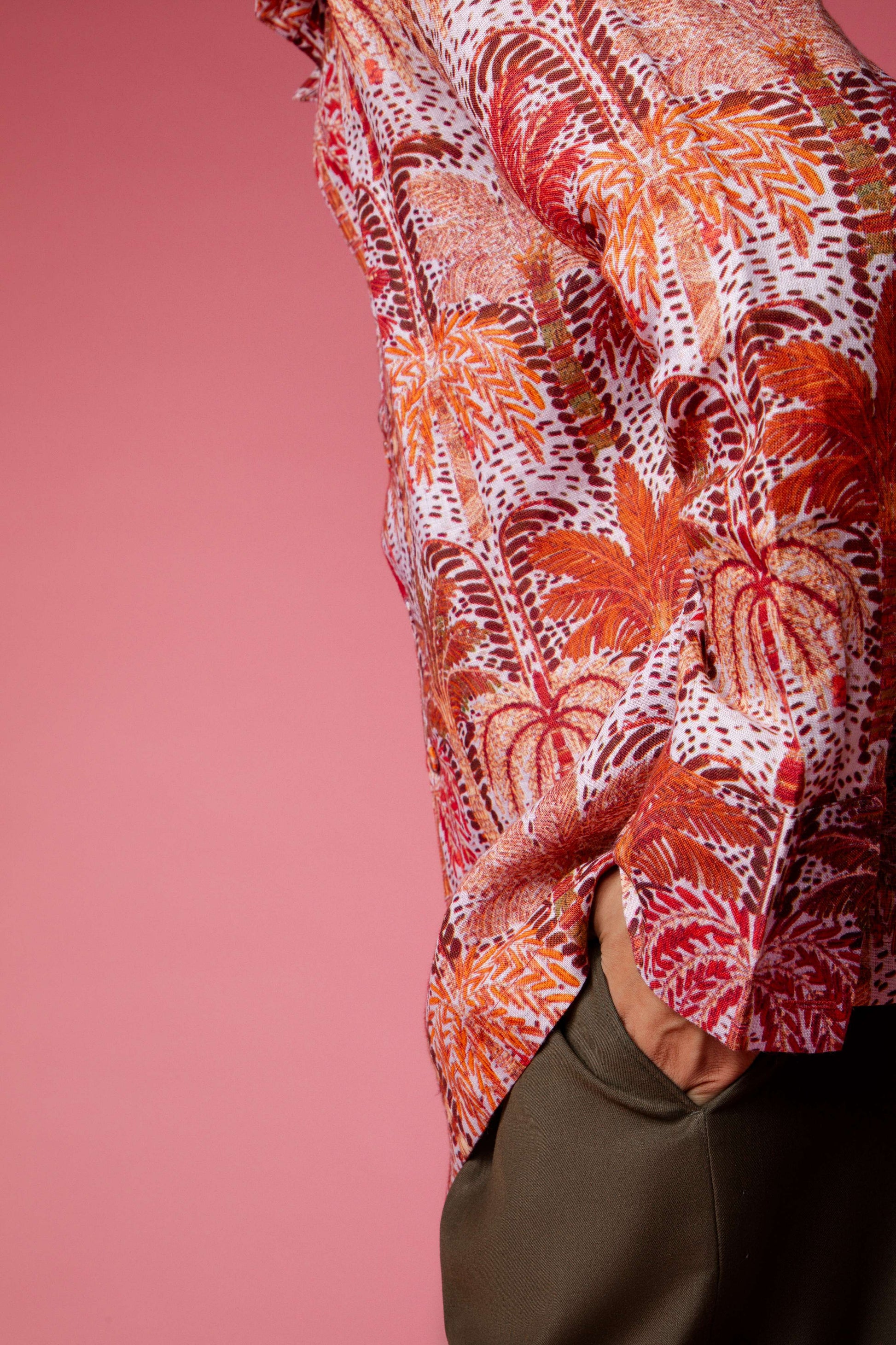 Built for laid-back days. This multi color linen shirt mixes corals, soft greens and earthy neutrals in a bold diamond-check pattern that feels vintage yet fresh. With a relaxed fit, full sleeves, and a classic collar, it’s the kind of piece that works just as well half-buttoned at a beach bar as it does tucked in for a casual brunch. Roll up the sleeves, pair with linen pants or shorts, and let the shirt do the talking.