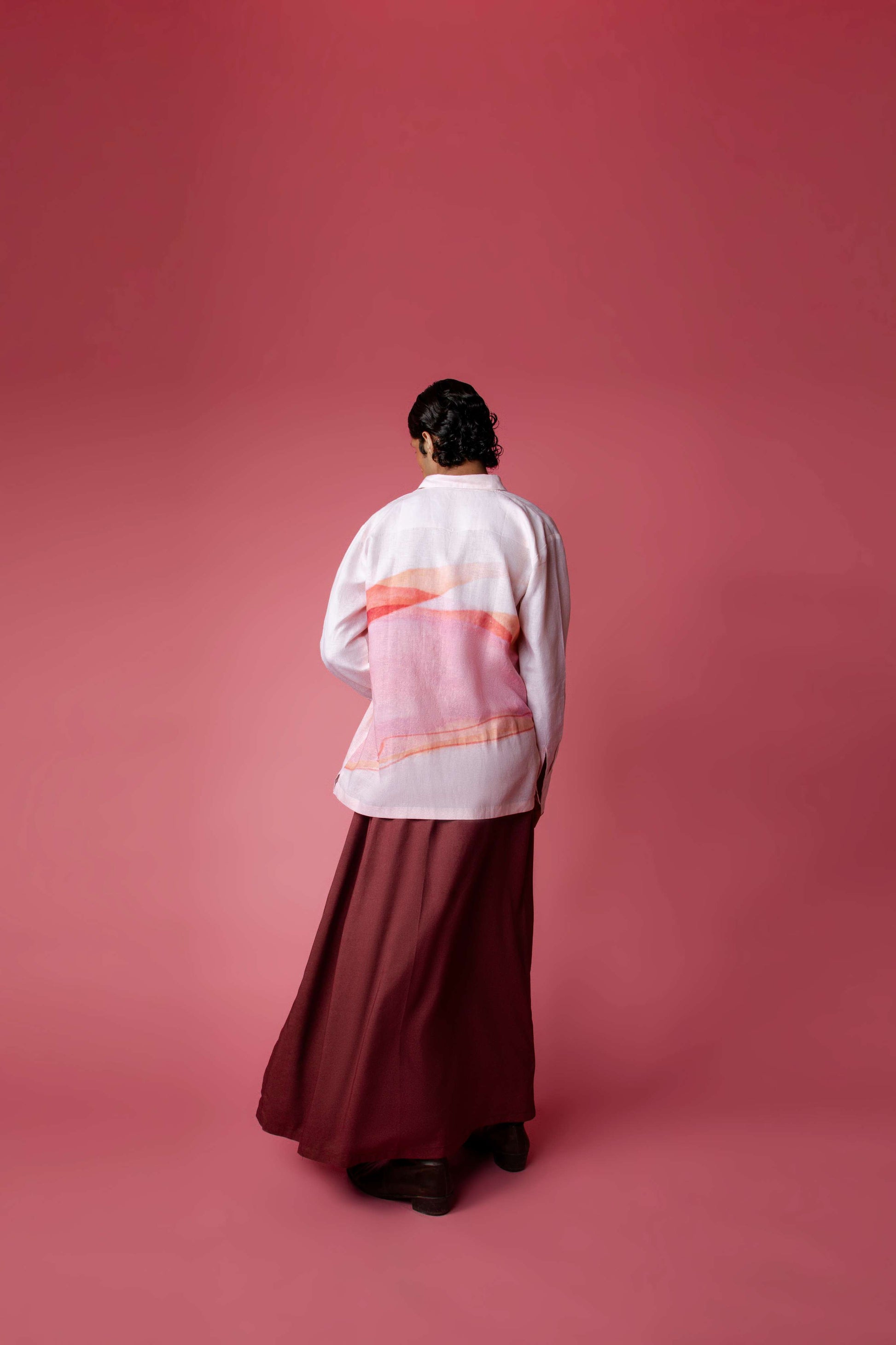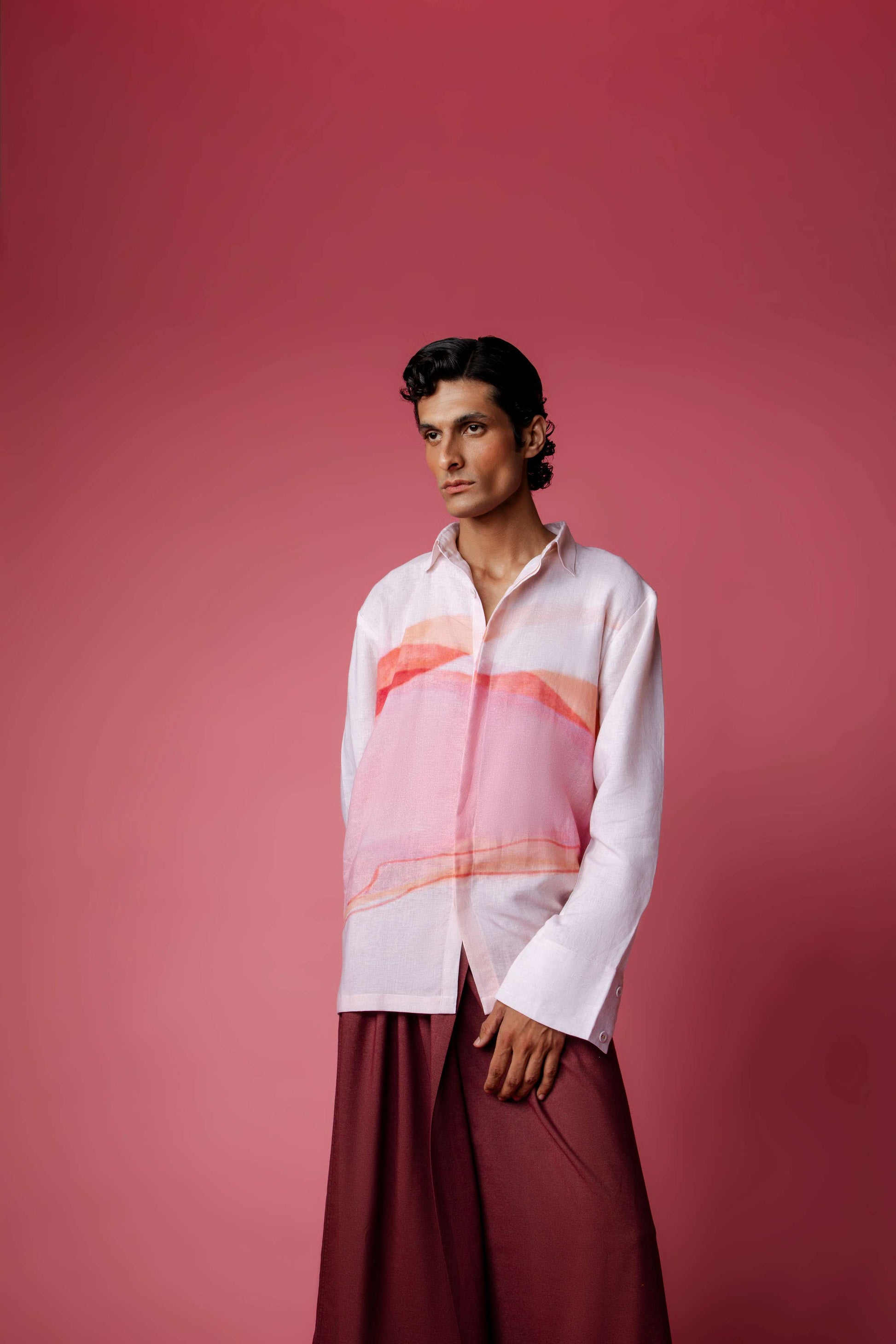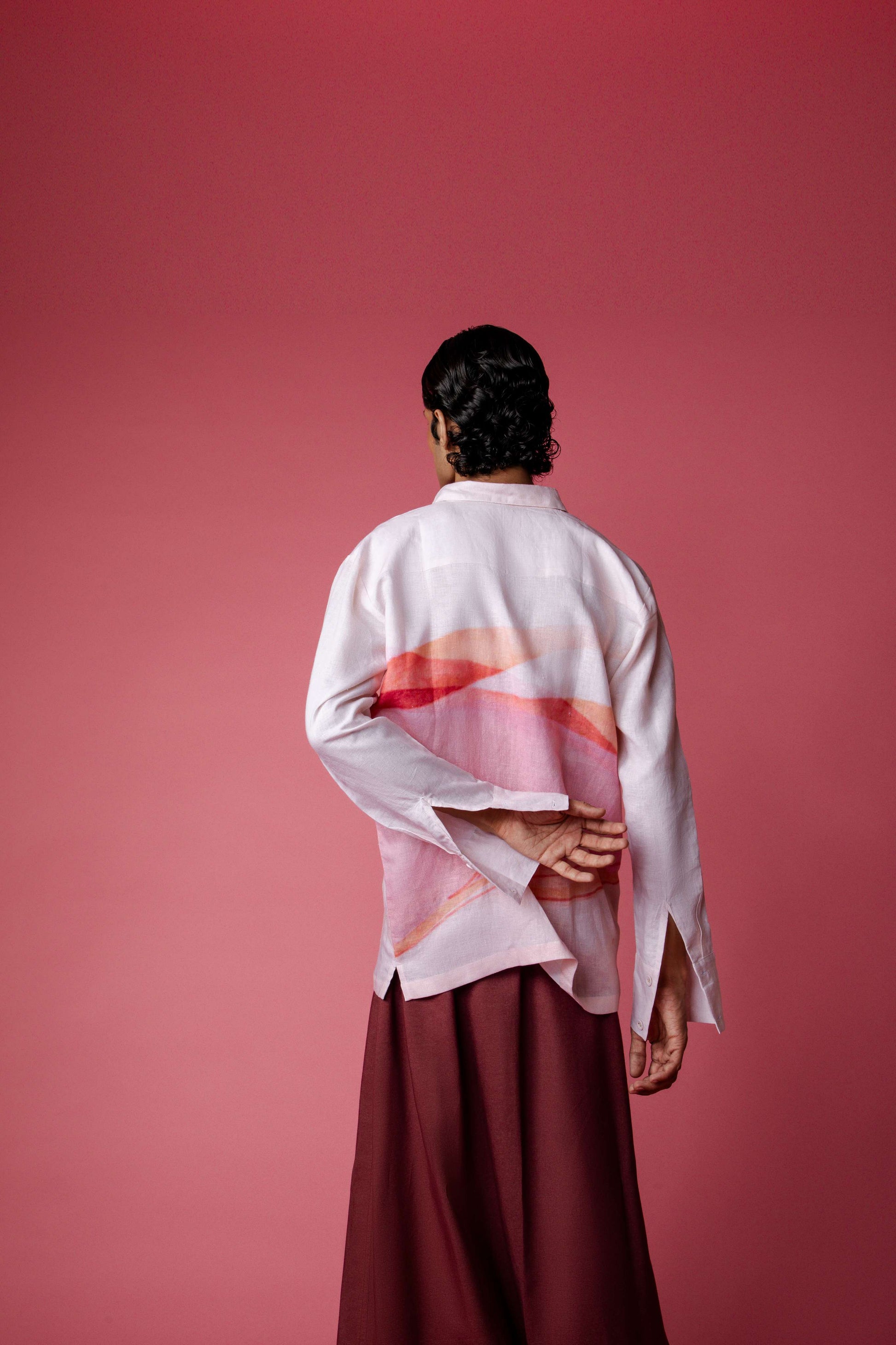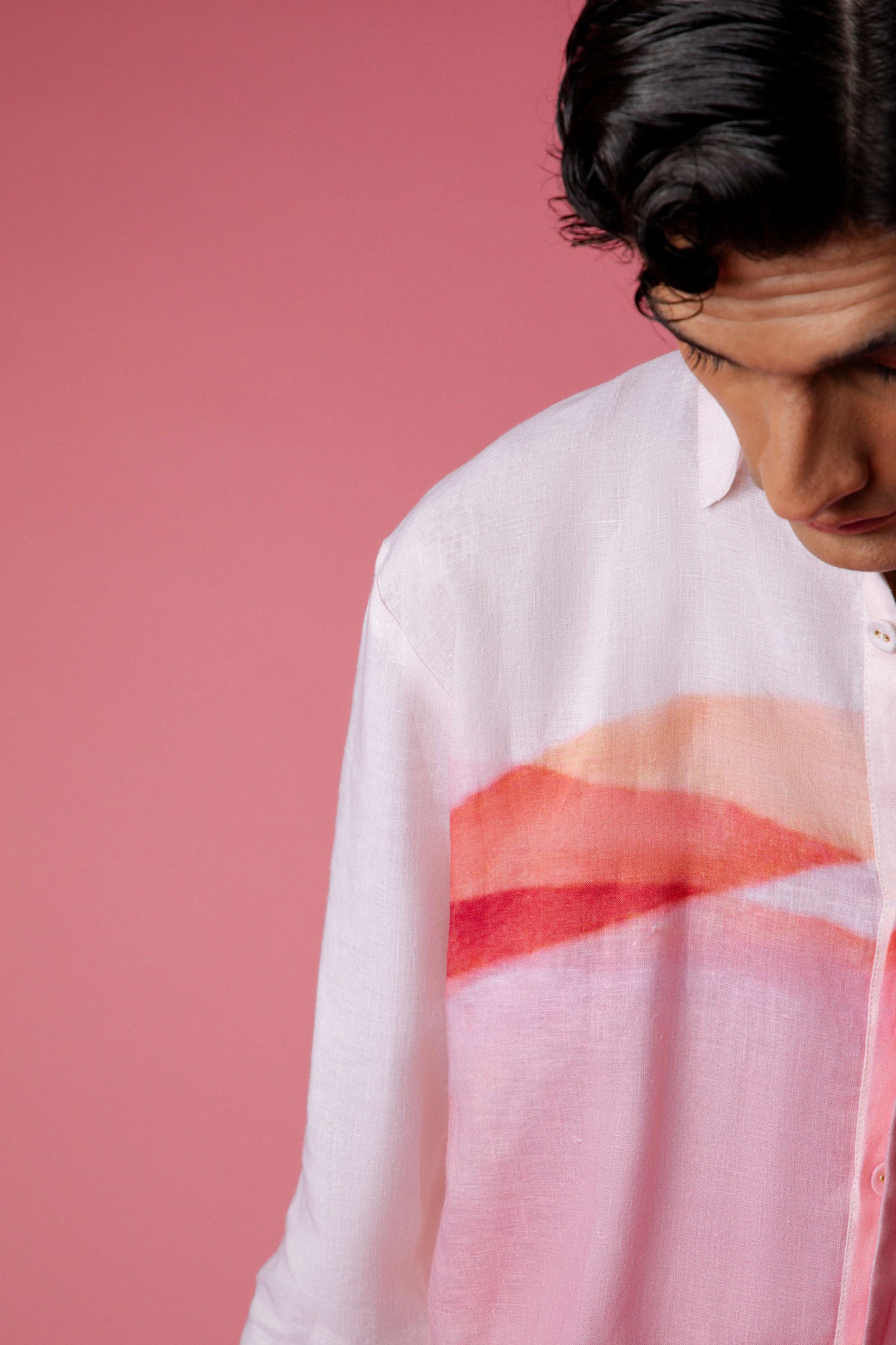 This lightweight, dapper shirt blends artful ease and effortless cool. Bold in light coral brushstroke stripes that dance across a soft cream canvas, turning it into a statement. The relaxed fit and open collar keep things unforced in a relaxing style with substance. Known for craftsmanship, the "Cut the Crap by Arva" label signals deliberate simplicity, not sloppy ease. Wear it confident, wear it easy—no nonsense required.