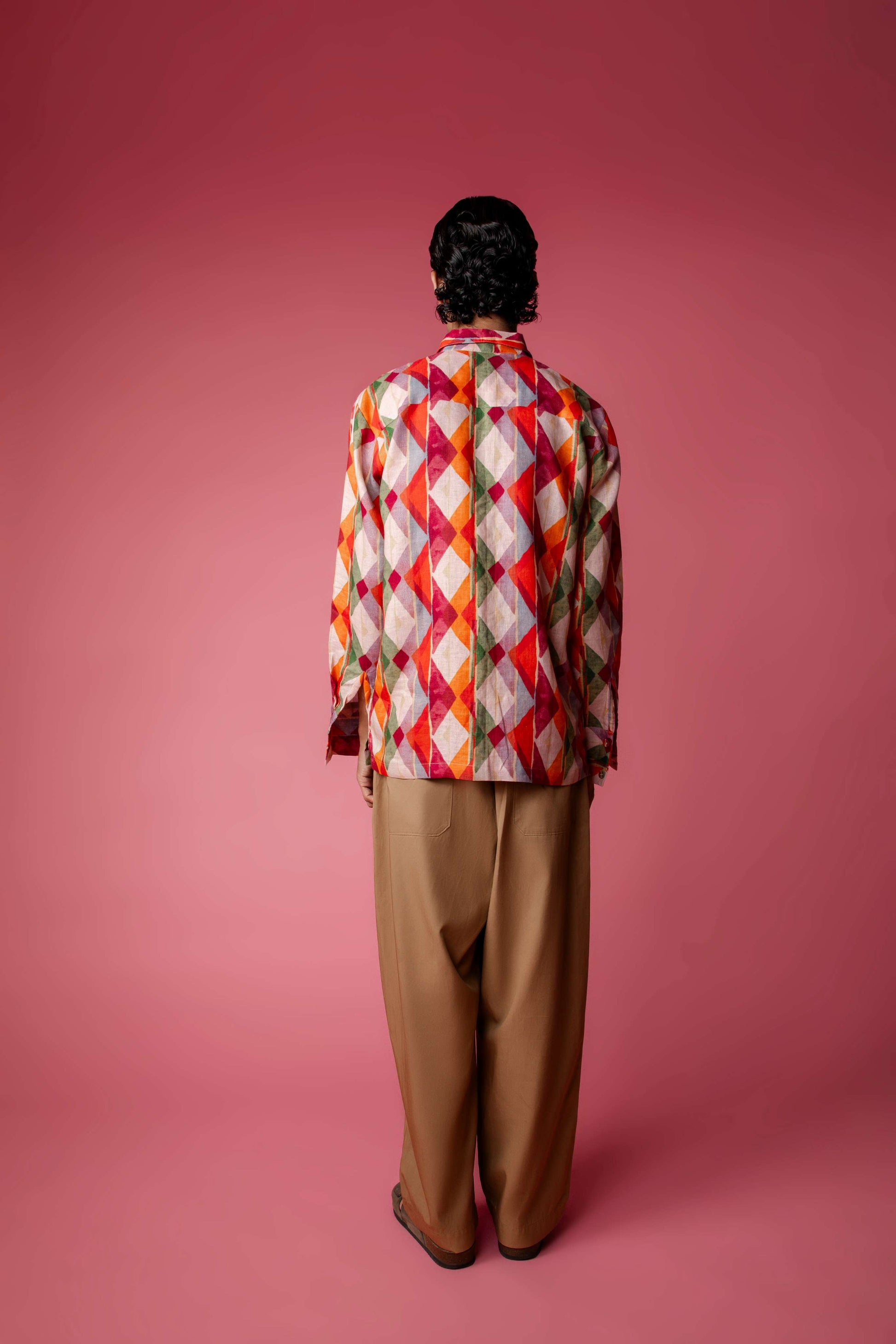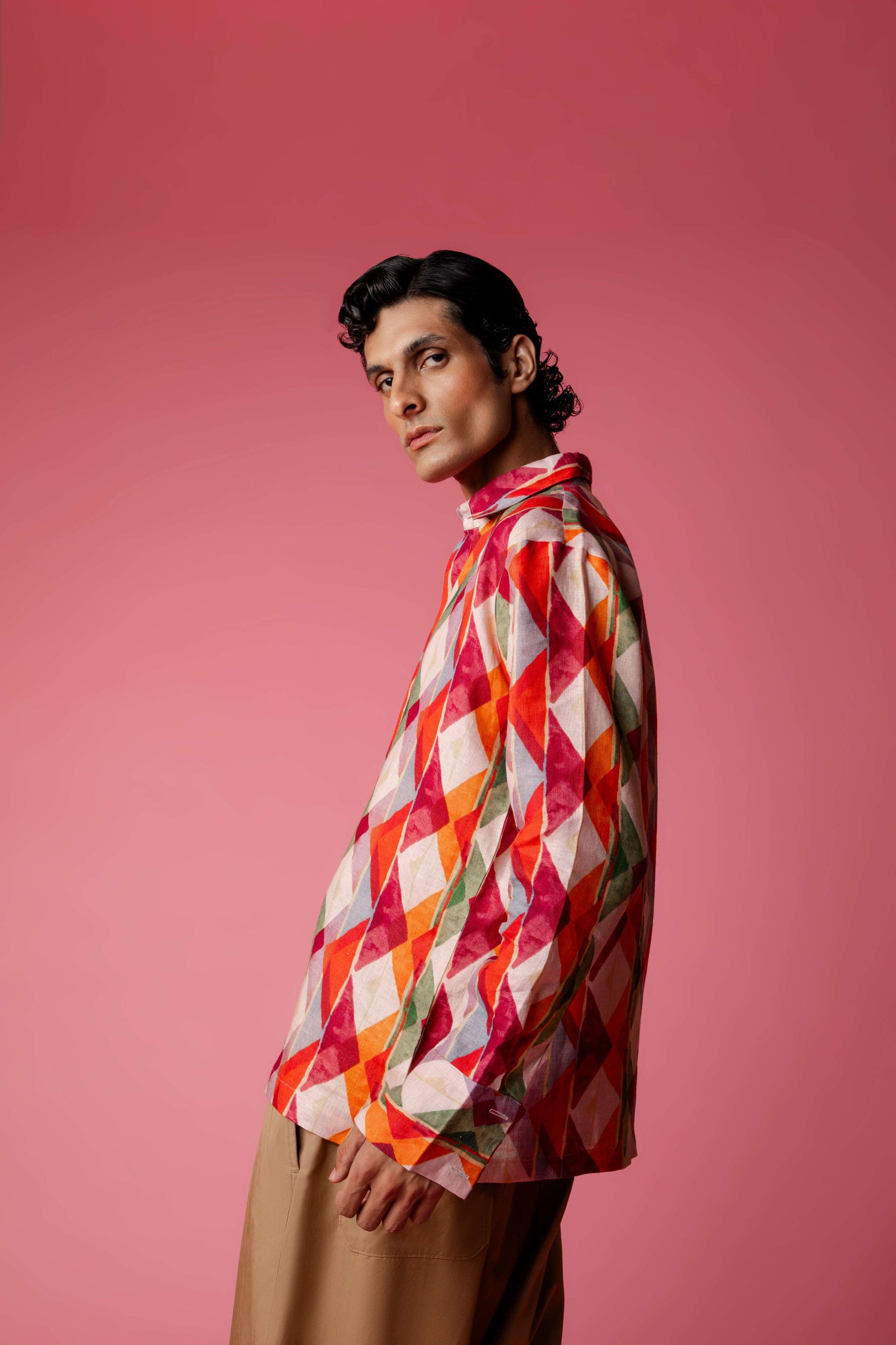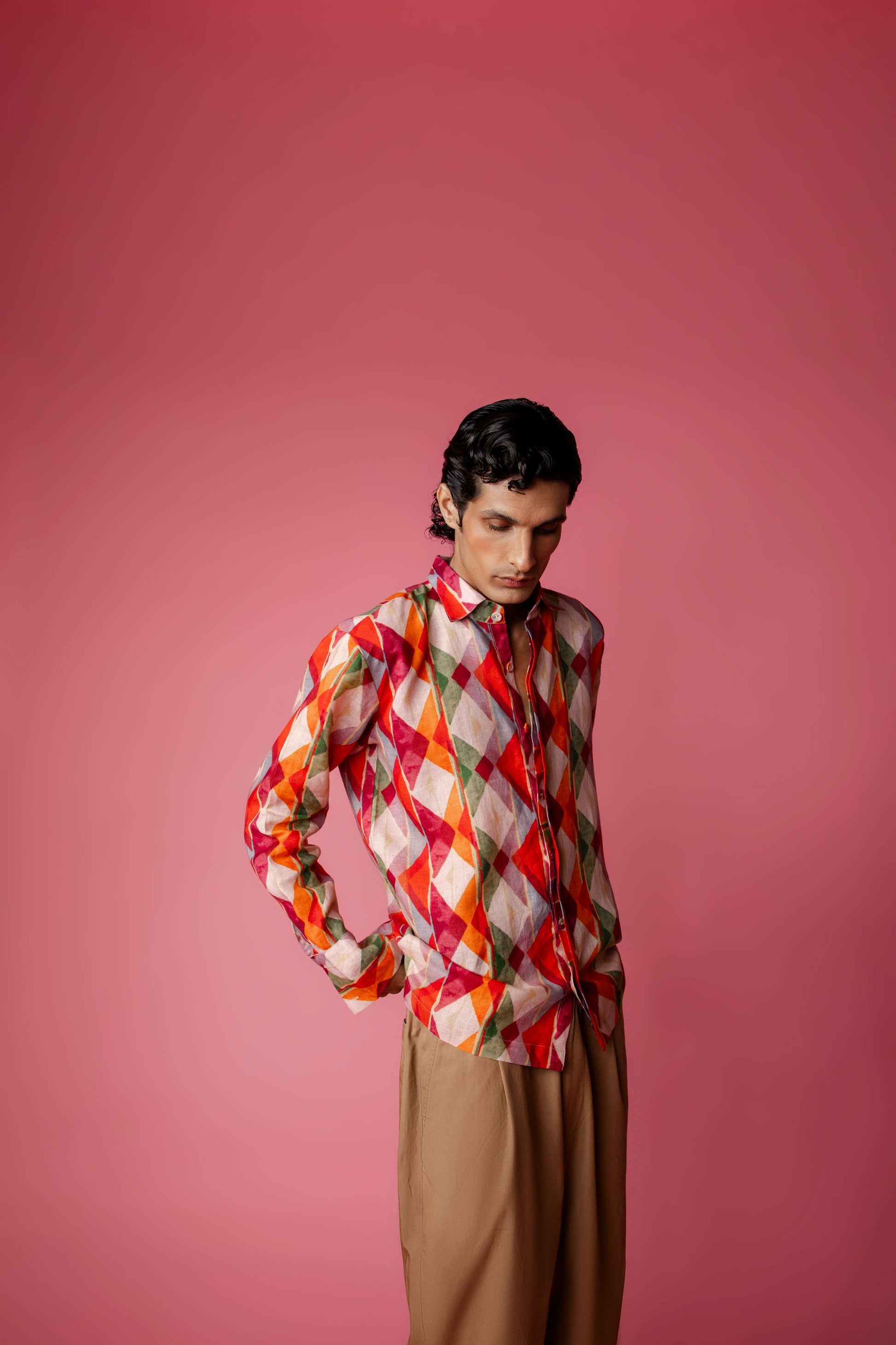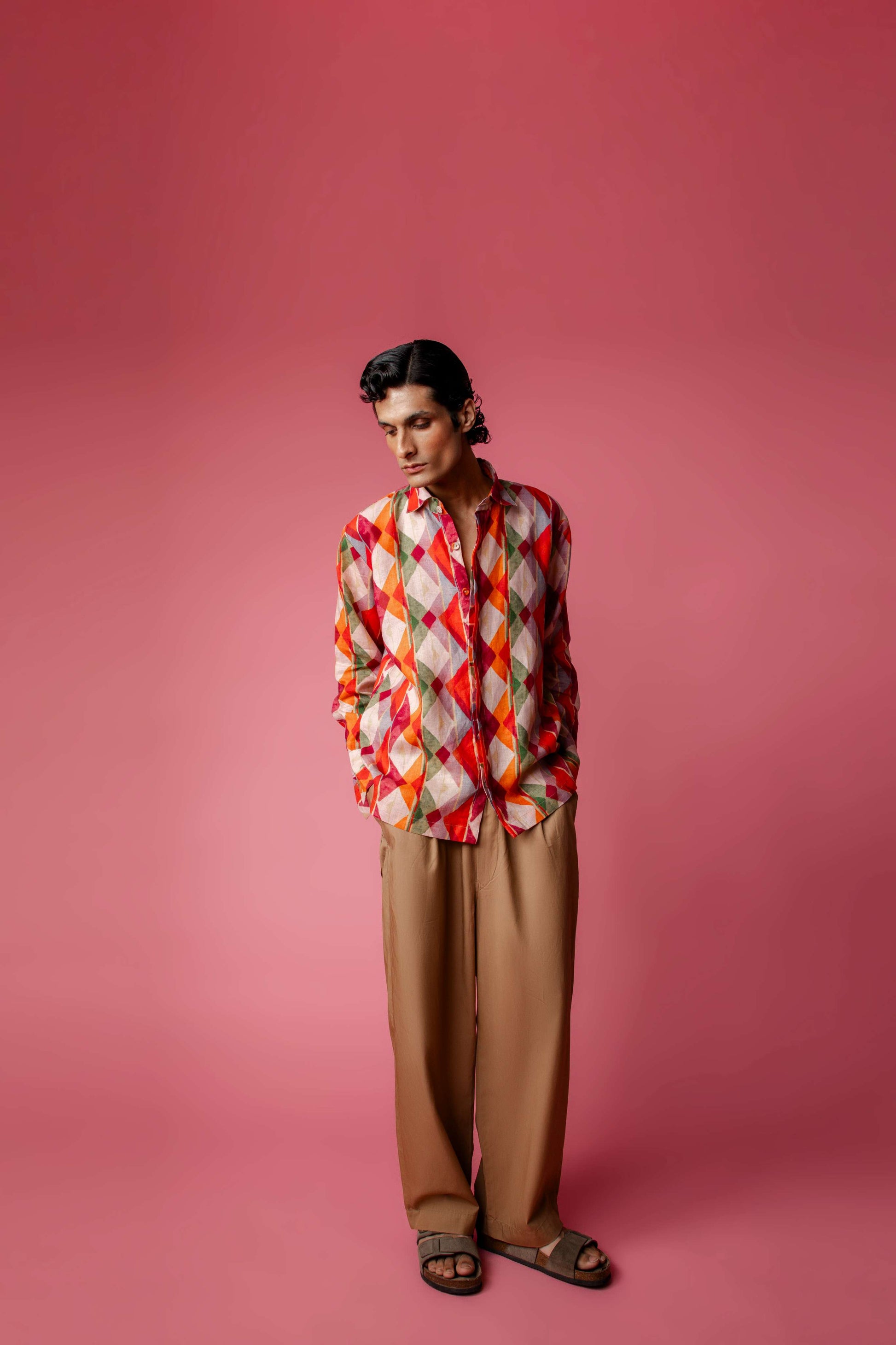 Bold and breezy with a tailored twist. This shirt is cut in our signature Prism print. A kaleidoscope of color's that plays with symmetry, light, and movement. The concealed plackets keep it smart casual. Style it with shorts and sneakers for daytime sass or on cooler nights layer with white crew necks/tank tops and linen pants. Let the print do the heavy lifting. Because when you're wearing Prism, blending in isn't an option